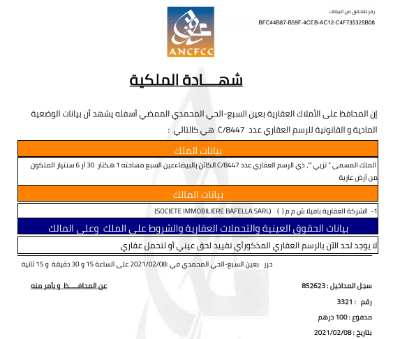 Médias24 a consulté un certificat de propriété de ce terrain datant de 2021, soit à l’arrivée de l’actuel bureau du conseil de la ville de Casablanca (fac-similé ci-dessous).