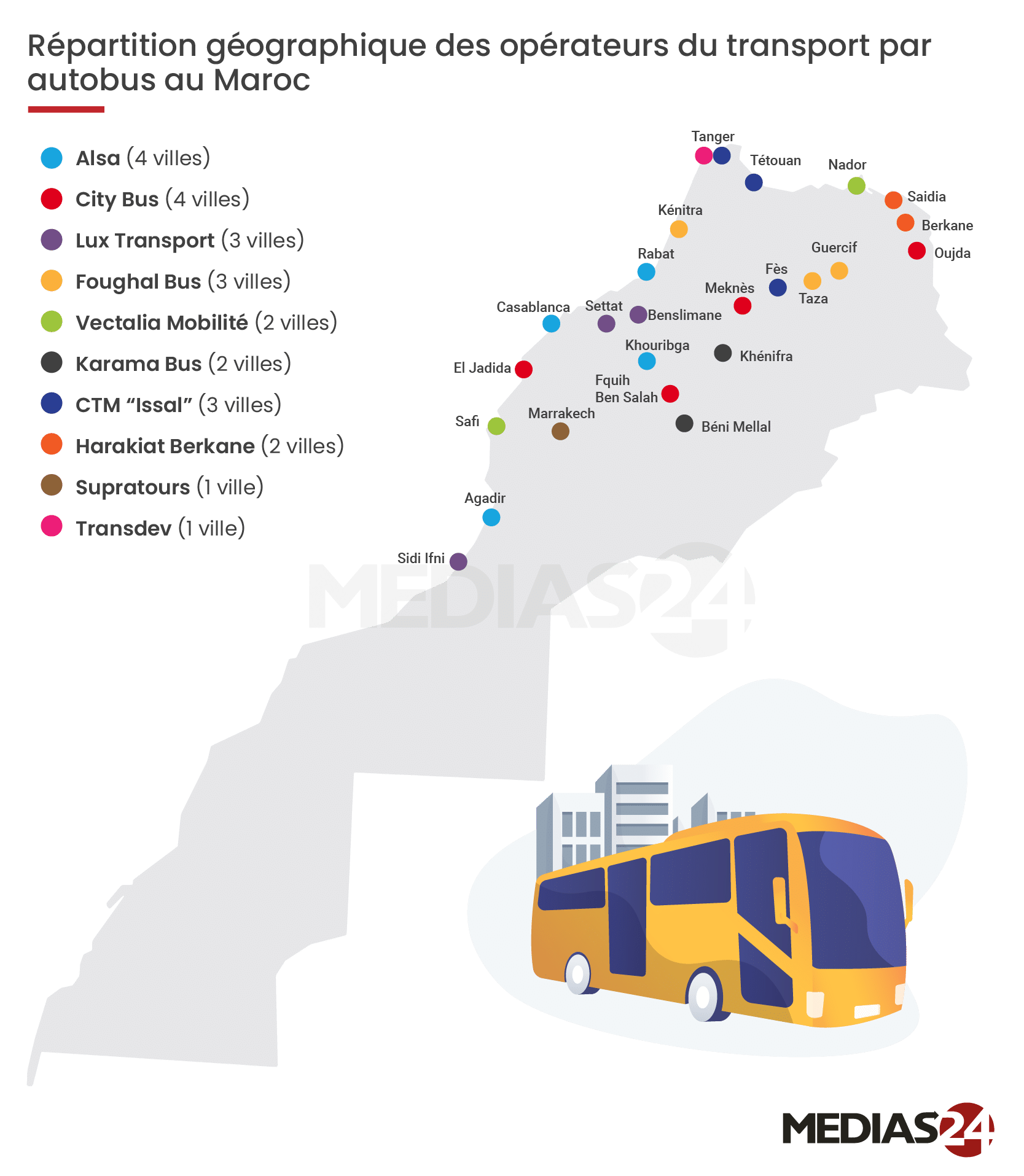 À l’heure où le Maroc accélère la modernisation de ses réseaux de bus en préparation au Mondial 2030, plusieurs marchés ont été lancés et certains attribués, avec une montée en puissance d’opérateurs marocains comme la CTM et Supratours. Sur le papier, Alsa et City Bus semblent reculer. Détails.
