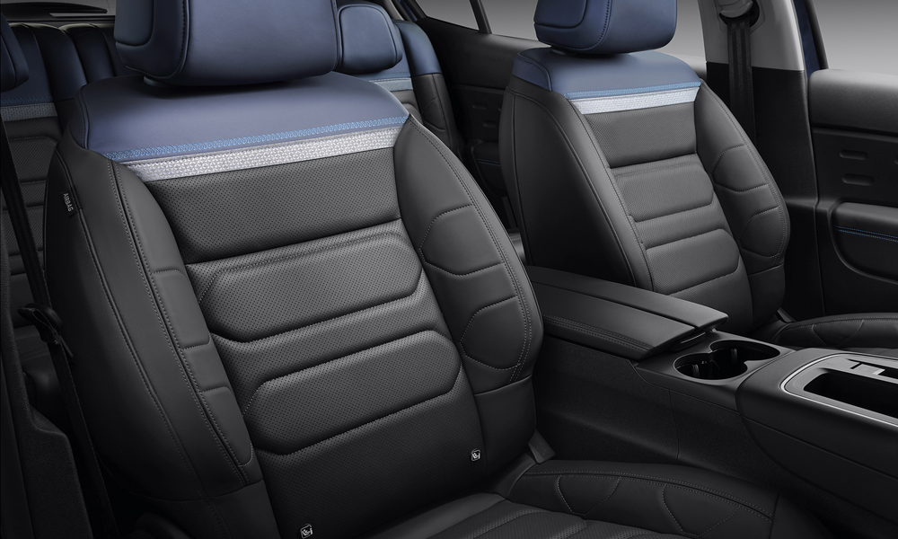 Ambiance "Hyper Black" : Cuir perforé noir / Cuir Nappa Bleu éclipse