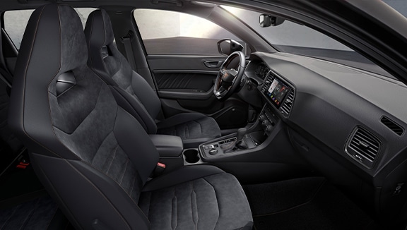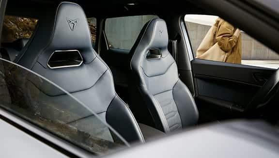 Sièges baquets sport à l’avant en partial leatherette chauffants, réglables séparément