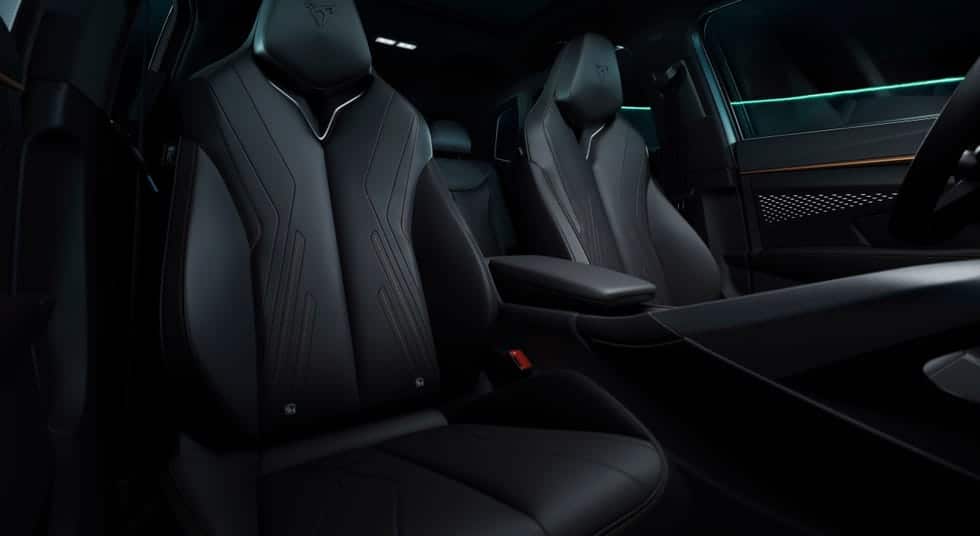Sécurité 7 Airbags : frontaux, latéraux, rideaux et central avant Système anti-blocage des roues (ABS) Correcteur électronique de stabilité (ESC) Différentiel électronique autobloquant (XDS) Sélection des modes de conduite Alerte de pression des pneus Direction dynamique Roue de secours complète Antidémarrage électronique Système d'alarme antivol avec surveillance de l'habitacle Front Assist avec détection des piétons et cyclistes Frein à main électrique avec fonction Auto Hold Dispositif de fixation pour sièges enfants “ISOFIX” Assistant de collision et de trafic arrière actif Assistant de prévention de collision Confort Climatisation automatique 3-zones Système Start & Stop Régulateur de vitesse adaptatif ( ACC ) Détecteur de pluie et de luminosité Démarrage sans clé “Keyless Advanced” Caméra multiview 360° Aide au stationnement avant et arrière Allumage automatique des projecteurs avec fonction « Coming & Leaving Home » Hayon électrique avec fonction d’ouverture mains-libres Pack rangement avec tiroir sous le siège avant droit Accoudoir central à l’avant et à l’arrière Sièges avant réglables électriquement avec fonction mémoire Sièges baquets sport à l’avant en partial leatherette chauffants, réglables séparément Rétroviseurs extérieurs électriques, chauffants, à mémoire et rabattables électriquement Rétroviseur intérieur jour/nuit automatique Sièges arrière coulissants Volant chauffant Intelligent Park Assist Esthétique Jantes en alliage 20” GRAVITY Feux de jour à LED Projecteurs Full LED avec feux arrière LED Feux antibrouillard avant à LED avec fonction cornering Pack extérieur noir glossy avec contours de vitres noirs Volant multifonction en cuir avec boutons satellite Welcome light (Éclairage LED projetant le logo CUPRA au sol) Bandeau arrière à LED et clignotants dynamiques Éclairage d’ambiance personnalisable à LED Vitres arrières surteintées Ciel de pavillon noir Toit ouvrant panoramique Sièges baquets sport en Cuir "HIGH CANYON" Connectivité & Multimédia Technologie Full Link sans fil compatible avec Android Auto® & Apple CarPlay® Système multimédia MIB3 avec écran tactile 12,9” Digital Cockpit 10,25” Commandes vocales Bluetooth® Prise USB Type C avec Prise de chargement Chargeur à induction avec amplificateur de signal mobile Système audio Premium "IMMERSIVE by SENHEISER" Suppléments et options Garantie : 2 ans ou 100.000 km