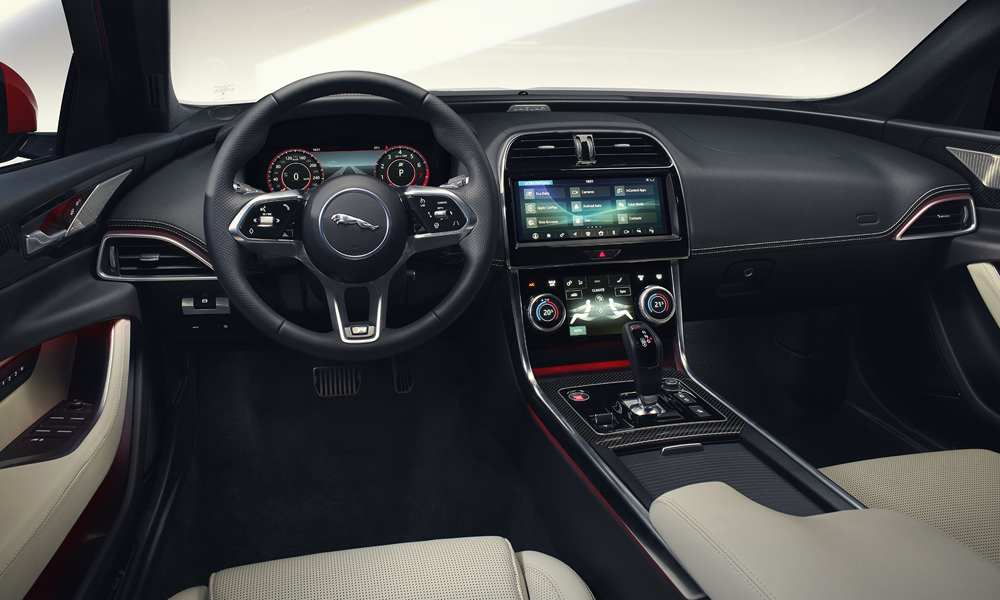 ABS, ESP, 6 Airbags, aide au démarrage en côte, contrôle de vitesse en descente, contrôle de la pression des pneus, assistant de maintien dans la voie, alerte de somnolence, régulateur et limiteur de vitesse adaptatifs avec fonction freinage, frein à main électrique, Stop & Start, 4 lève-vitres électriques, rétroviseurs extérieurs à réglage électrique, accès et démarrage sans clé, climatisation automatique bizone commandée par écran tactile 5,5’’, système d’infodivertissement à écran tactile 10’’ avec commandes vocales, prises USB et AUX, Bluetooth, réplication de smartphone Apple CarPlay et Android Auto, navigation GPS, allumage automatique des feux, capteur de pluie, éclairage d’ambiance, sièges avant Sport à réglage électrique, sellerie cuir, volant Sport “R-Dynamic” multifonctions gainé de cuir, sélecteur de mode de conduite, stationnement automatisé avec radar de distance av/ar et caméra vision 360°, projecteurs Full LED, feux de jour, feux arrière et projecteurs antibrouillard à LEDs, clignotants défilants, jantes alliage 18”.