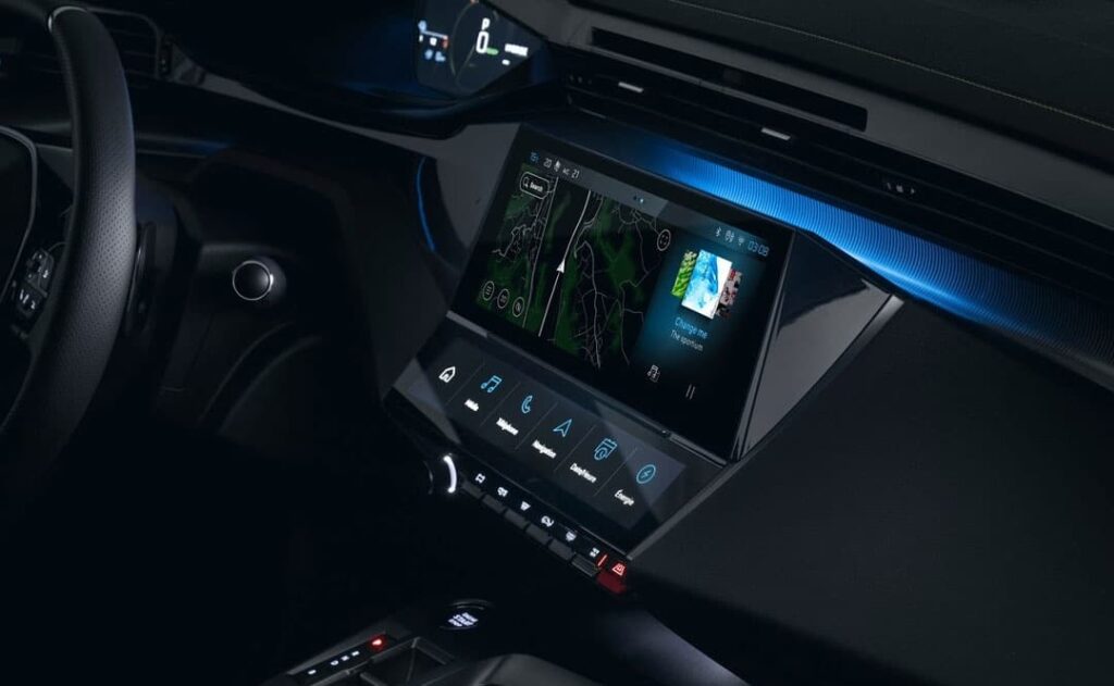 Sécurité 8 airbags : frontaux auto-adaptatifs, latéraux et rideaux avant et arrière ABS avec REF, AFU et ESP Aide au démarrage en pente Freinage d’urgence automatique avec alerte risque de collision, pilotée par caméra et radar Alerte active de franchissement involontaire de ligne et bas-côté Reconnaissance étendue des panneaux de signalisation et préconisation de vitesse Détection de sous-gonflage indirecte Alerte attention conducteur Confort Climatisation automatique Bi-zone Régulateur / limiteur de vitesse Caméra de recul HD Aide au stationnement arrière, graphique et sonore Accès et démarrage mains libres Proximity Commutation automatique des feux de route Essuie-vitre avant à déclenchement automatique Lève-vitres avant et arrière électriques et séquentiels avec anti-pincement Rétroviseurs extérieurs dégivrants à réglage et rabattement électriquement Rétroviseurs extérieurs avec répétiteurs de feux clignotants à LED Rétroviseur intérieur photosensible Frein de stationnement électrique Eclairage des caves à pieds avant à LED Boite à gants et rangement de console éclairés à LED Esthétique Jantes alliage 19’’ JASPE Feux diurnes 3 griffes à LED Projecteurs PEUGEOT LED Technology Plafonnier avant et liseuses arrière à LED Coques de rétroviseurs extérieurs noir brillant Sellerie TEP / Tissu «Falgo» avec surpiqûres bleu Vitres latérales et arrière surteintées Grille de calandre chromée Connectivité & Multimédia Mirror Screen sans fil avec écran tactile 10’’ Compatibilité Apple CarPlay® & Android Auto® ) Recharge smartphone sans fil PEUGEOT i-Cockpit® avec écran 10’’ HD Bluetooth® avec connexion simultanée de 2 smartphones Suppléments et options Garantie : 3 ans ou 100.000 km