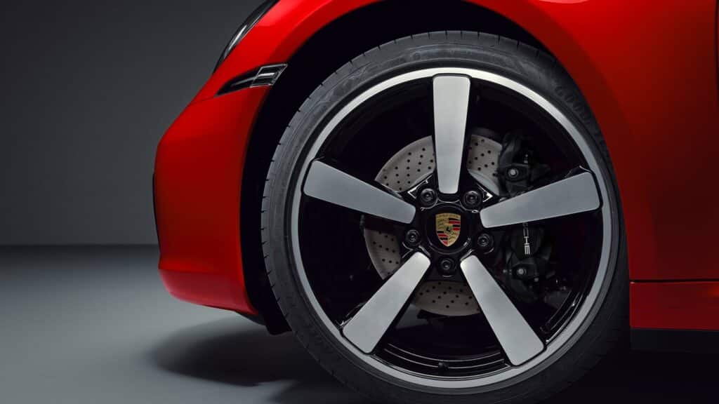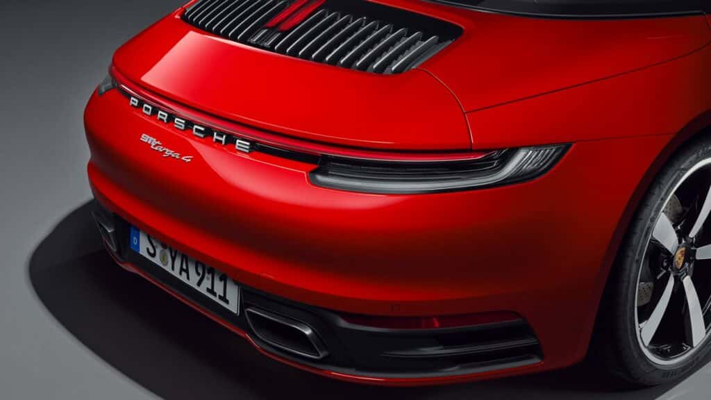 Sécurité 8 airbags : frontaux, latéraux, de tête et de thorax Porsche Side Impact Protection System (POSIP) Porsche Stability Management (PSM) ABS avec fonctions de freinage avancées Frein de parking à commande électrique Détection des piétons Porsche Active Suspension Management (PASM) Système de surveillance de la pression des pneus (TPM) Points de fixation sur le siège passager pour le système de fixation ISOFIX Système d'alarme avec surveillance intérieure Confort Climatiseur automatique Bi-zone avec filtre à particules Fonction Stop&Start Sièges Sport (4 positions) Sièges chauffant à l'avant Rétroviseurs intérieurs et extérieurs à gradation automatique avec détecteur de pluie intégré Rétroviseurs extérieurs rabattables électriquement avec éclairage de courtoisie Volant multifonction chauffant avec commutateur de mode Volant avec réglage manuel de l'inclinaison et de la hauteur Pare-soleil pour le conducteur et le passager avant ParkAssist (avant et arrière) avec avertissement visuel et sonore Caméra de recul Régulateur de vitesse Esthétique Jantes 19" en alliage léger Phares matriciels à LED Garniture des jupes latérales en Noir Partie inférieure des rétroviseurs et base en Noir Contour des vitres latérales en Noir Grille du capot arrière avec lamelles verticales en Noir (finition brillante) Système d'échappement avec 2 sorties tubulaires fixés au pare-chocs (en acier inoxydable) Système de freinage avec étriers de frein en Noir Poignées de portes peintes en couleur extérieure Lettering 'PORSCHE' en Argent (finition brillante) Bandeau lumineux avec lettering 'PORSCHE' Désignation du modèle à l'arrière en Argent Clair Pack intérieur Diamar en Argent Foncé Fond de compteurs en Noir Pédalier et repose-pieds en Noir Baguettes de seuil de porte en aluminium avec désignation du modèle Connectivité & Multimédia Porsche Communication Management (PCM), y compris la préparation à la téléphonie mobile et les interfaces audio Module de navigation pour Porsche Communication Management Compartiment pour smartphone Chargement par induction Commande vocale Radio numérique Sound Package Plus Smartphone integration Chargement rapide USB-C Suppléments et options Garantie : 2 ans ou 100.000 km