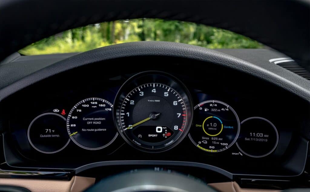 - Sécurité 10 airbags : frontaux grand volume, latéraux, de tête et de genoux Porsche Side Impact Protection System (POSIP) Porsche Stability Management (PSM) ABS avec fonctions de freinage avancées Frein de parking électrique Freinage multi-collision Détection des piétons Porsche Active Suspension Management (PASM) Système de surveillance de la pression des pneus (TPM) Points de fixation sur le siège passager pour le système de fixation ISOFIX Système d'alarme avec surveillance intérieure Confort Climatiseur automatique Bi-zone avec filtre à particules Sièges Confort à l'avant (8 positions, électriques) Sièges arrières 2+1 Sièges chauffant à l'avant Pack mémoire conducteur Pack Sport Chrono Suspension de série Rétroviseurs intérieurs et extérieurs à gradation automatique Assistance parking avant et arrière avec caméra de recul et vue 360° Assistance active au stationnement avec caméra (360° + 3D) Assistance parking à distance Accès Confort Fermeture assistée des portières ( Soft Close ) Hayon automatique avec commande gestuelle Esthétique Jantes 20" en alliage léger aeroDesign Eclairage d'ambiance Phares matriciels à LED Feux arrière à LED avec bandeau lumineux Pack extérieur Argent (finition brillante) Partie inférieure des rétroviseurs et base en Noir Poignées de portes peintes en couleur extérieure Enjoliveur de passage de roue Becquet de toit en couleur extérieure Désignation du modèle en Argent avec contour en Noir Système d'échappement en acier inoxydable brossé Système de frein avec étriers Noir Pack d'accentuation Noir Pack intérieur Diamar peint en Argent Ombre Volant multifonction avec palettes Ciel de toit en tissu Pédalier et repose-pieds en Noir Fond du chronomètre / Boussole Sport Chrono en Noir Baguettes de seuil de porte en aluminium avec désignation du modèle Connectivité & Multimédia Module de navigation pour Porsche Communication Management Compartiment pour smartphone avec chargement par induction (jusqu'à 15 W) Commande vocale Radio numérique (DAB +) Sound Package Plus Smartphone integration USB-C charge rapide E-Mobilité Electric Sound Chargeur CA embarqué avec une puissance de charge allant jusqu'à 11 kW Charging cable for charging at alternating current chargers with 6m length (up to 11 kW) Suppléments et options Garantie : 2 ans ou 100.000 km