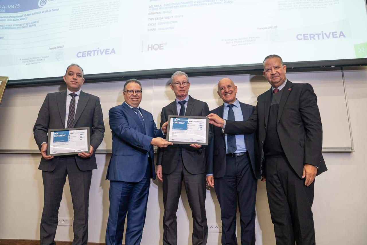 La Fondation Mohammed VI des Sciences et de la Santé a organisé, le jeudi 29 janvier 2026 au sein du Complexe hospitalo-universitaire international Mohammed VI de Rabat, une cérémonie officielle de remise de deux certificats attribués à l’Hôpital universitaire international Mohammed VI de Rabat et à l’Université Mohammed VI des Sciences et de la Santé de Rabat. Cette célébration s’est faite à l’occasion de la certification HQE (Haute qualité environnementale) de niveau “Exceptionnel” délivrée par CERTIVEA, une première au Maroc et en Afrique.